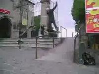 Un gars se vautre en voulant sauter par dessus des chaines avec son skate.