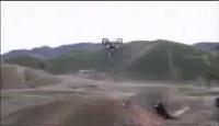 Un gars loupe son saut en dirtbike et reçoit sa moto sur la tête