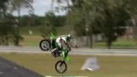 Un motard se fait serrer contre le rail de sécurité sur l'autoroute